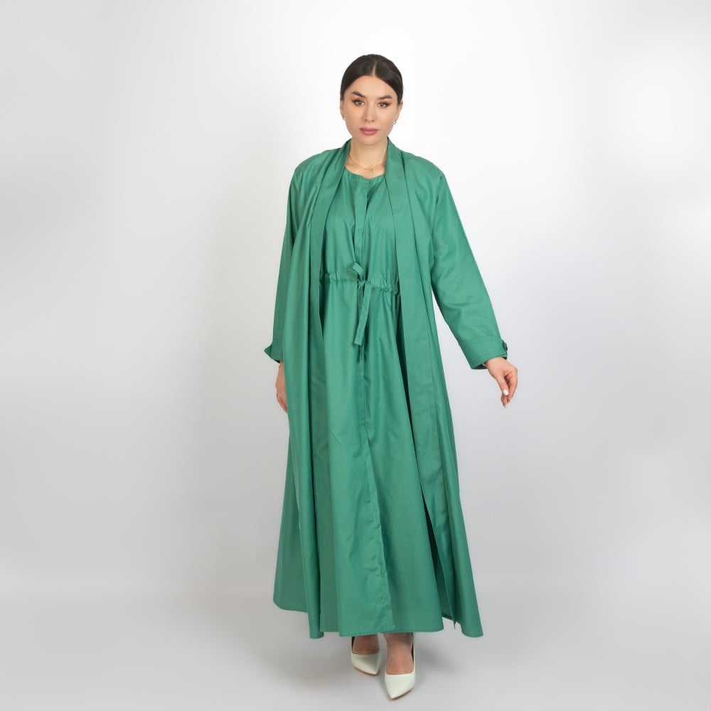 عباية فستان باللون الأخضر تعد خيارًا مثاليًا للأناقة والراحة في آن واحد. تم تصميم هذه العباية لتمنحك إطلالة أنيقة وعصرية، مع لمسة من الفخامة تناسب كاف...