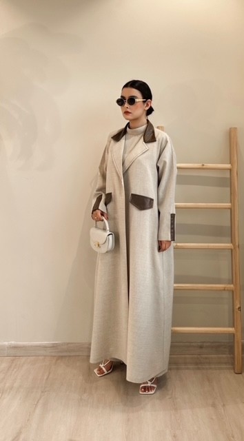 Discover the elegance of winter with this light beige abaya , which combines luxury and comfort in one design. Made from high-quality fabrics, this abaya features a soft and warm texture, making it the perfect choice for the cold season.