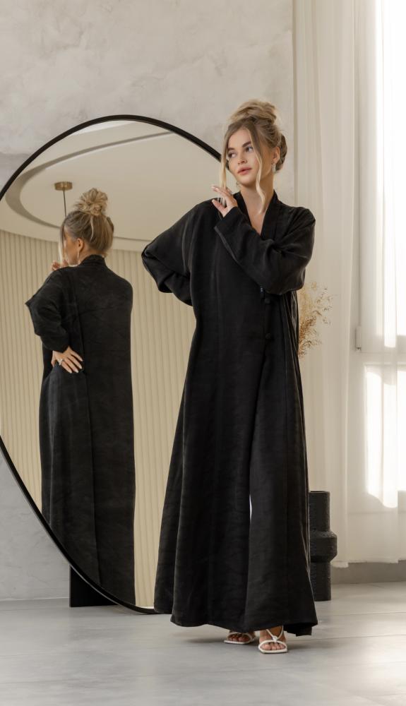 With the black abaya, get a sophisticated and elegant look with the black casual abaya made of soft printed fabric, which combines elegance and comfort. This abaya is suitable for all daily and special occasions thanks to its modern design and its matching buttons that add a touch of sophistication to the look.