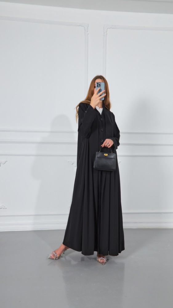 Abaya made of luxurious fabric, with an inner piece with carefully selected elegant buttons and an outer jacket collar. Designed to be a cool, practic...