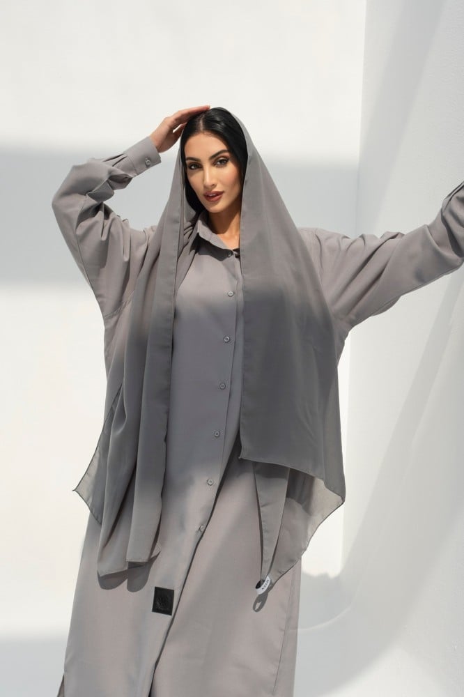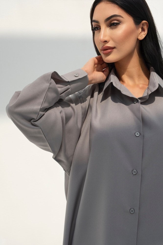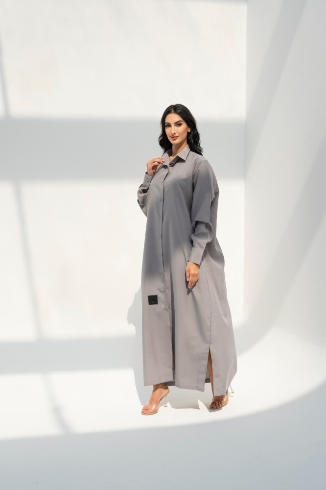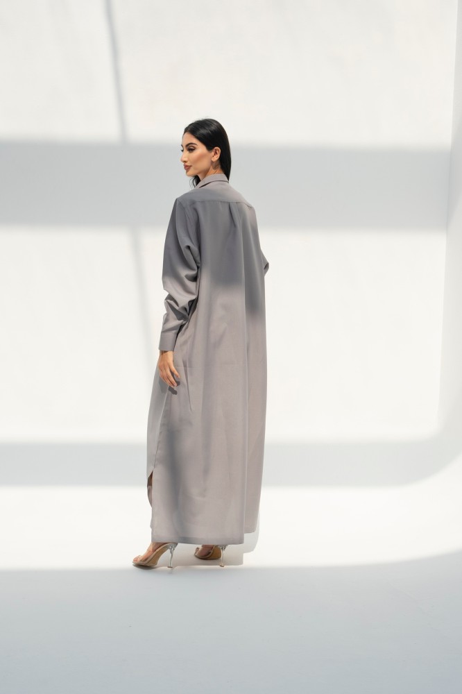 Linen abaya, long, wide shirt style, gray color