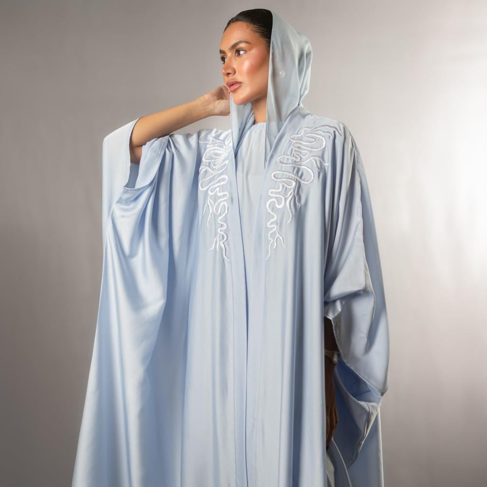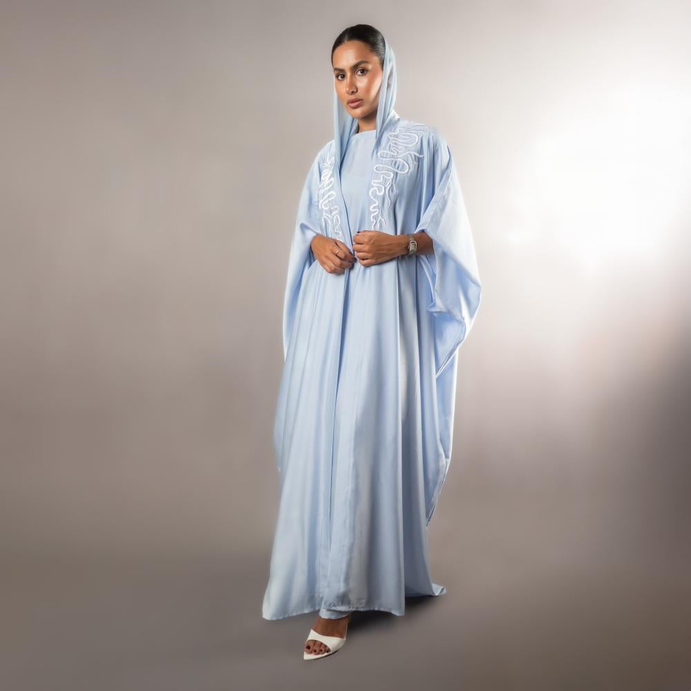 With the Sky Blue Abaya, enjoy a unique elegance decorated with elegant white hand embroidery. This abaya is the perfect choice for your summer look a...