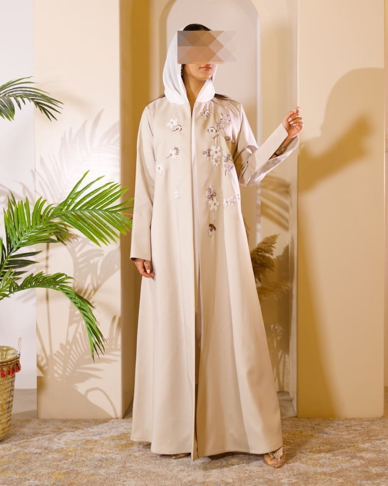 Abaya made of taffeta, hand-embroidered and organza