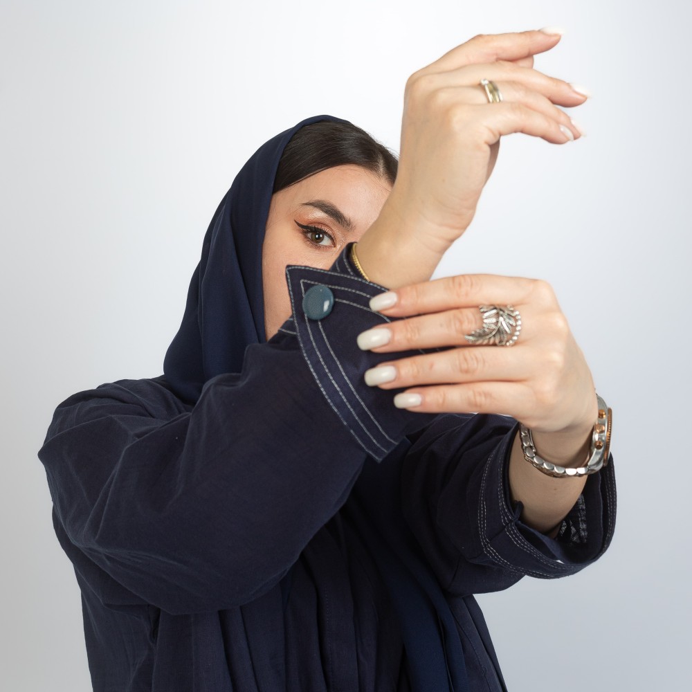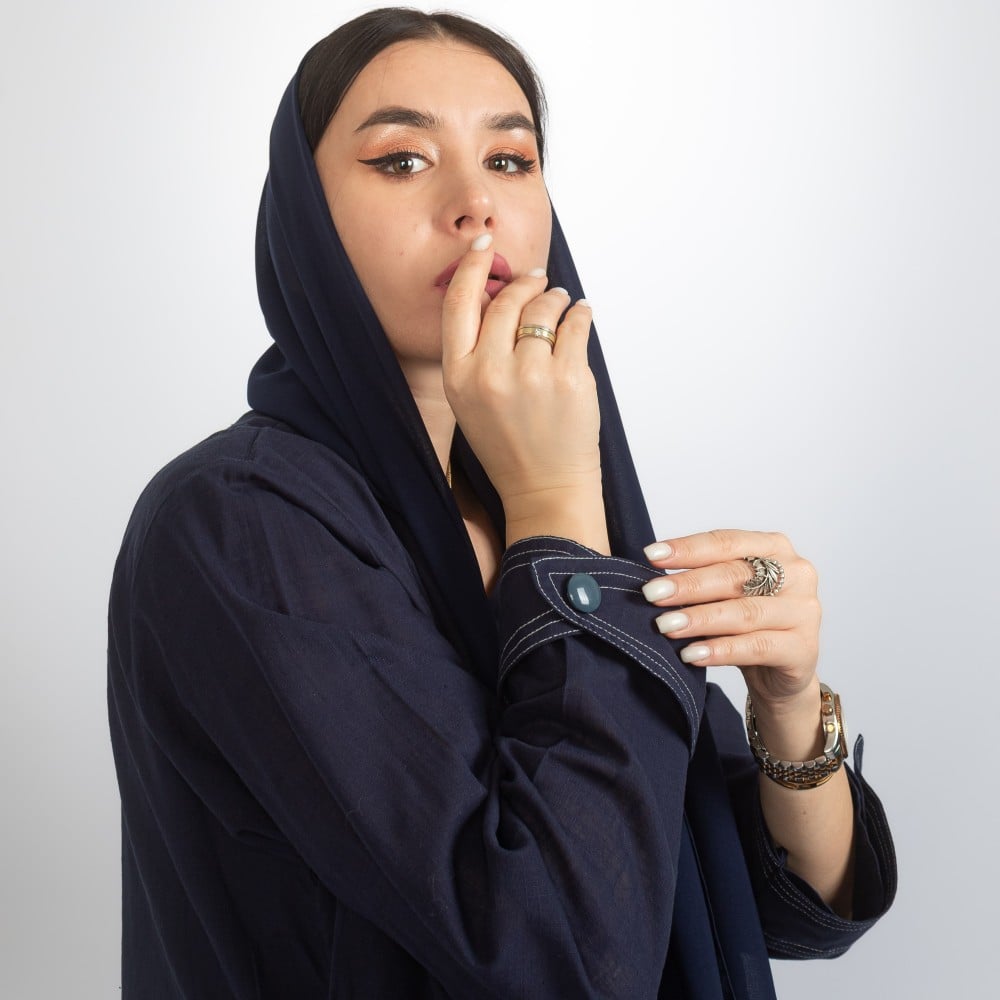 Linen abaya, navy blue, in the shape of an inner dress, with a veil of the same color